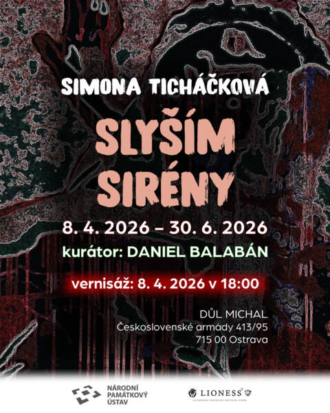 Důl Michal v Ostravě zve na výstavu Simony Ticháčkové Slyším sirény. Výstava bude pro veřejnost otevřena od 8. dubna do 30. června 2026 v prostorách Národní kulturní památky Důl Michal.